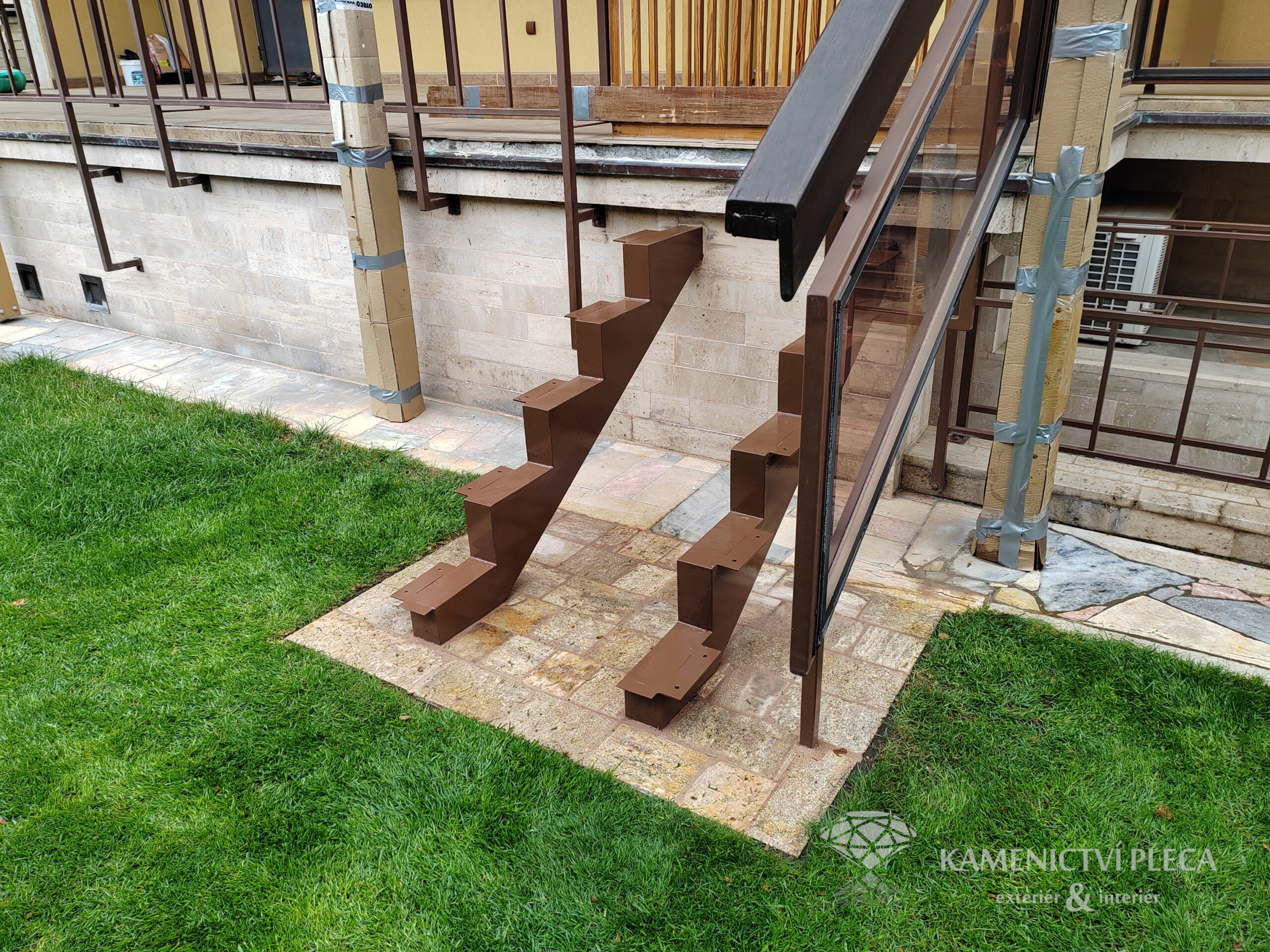 Do Hodonína jsme dodávali a instalovali masivní nášlapové desky, které vedou z terasy do zahrady.